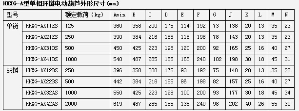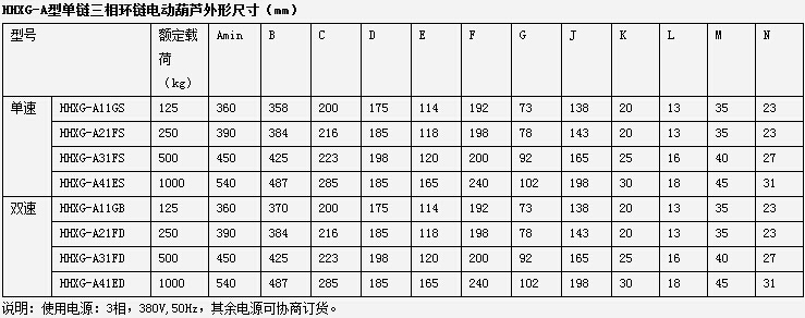 HHXG-A型0.125-2吨环链电动葫芦分为:HHXG-A型单链三相环链电动葫芦、HHXG-A型双链三相环链电动葫芦、HHXG-A型单相环链电动葫芦。 | |
