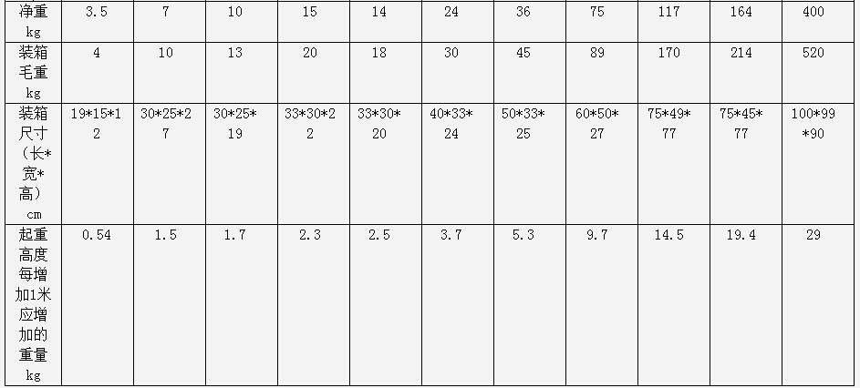 飞鸽HSZ-A型手拉葫芦参数: | |