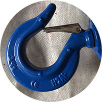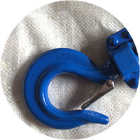 正品飛鴿手扳葫蘆吊鉤如上圖所示,其吊鉤開口處有舌片設計,吊鉤上有噸位標識,二者缺一不可,其內徑為7.5m。